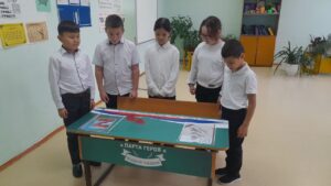 Учащиеся 4 класса, участники программы «Орлята России», рассказали о реализации » проекта «Парта Героя», о выпускнике нашей школы, погибшем при исполнении воинского долга в СВО. Их кураторы, участники движение первых провели обзорную экскурсии по экспонатам музея. В качестве рефлексии была проведена интерактивная игра, после чего все участники занятия поделились своими впечатлениями и задали интересующие вопросы.